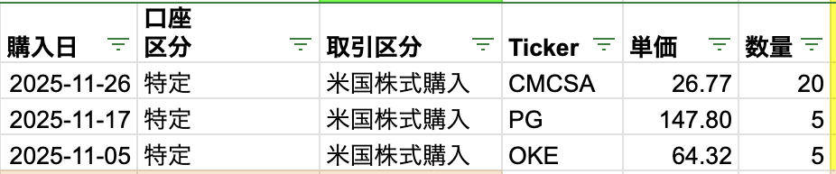 2025年11月の買付状況