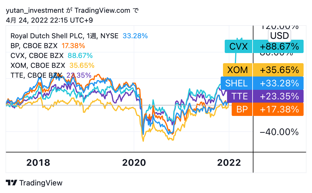 直近5年で見ても、BPのリターンは同業他社に遅れをとっています(´・ω・`)