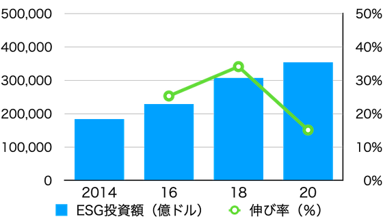 ESG投資を推進している国際組織が出しているデータであることを割り引いたとしても、ESG投資が急速に普及していることは間違いないでしょう。