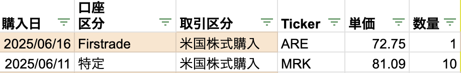 2025年6月の買付状況