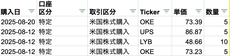 配当再投資が中心です。原油や天然ガスの輸送などを手がけるOKE(ワンオーク、ONEOK)を買い戻し、ポジションは一時売却前に戻りました。